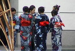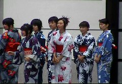 演劇祭KOCHI2005「ポかリン記憶舎」の公演で、女子塾生7名が案内係のボランティア。日本人の身体感覚と日本語の美しい響きを体現し、観客を瞑想的空間へ。生徒達は美術館のあちこちで「ゆかた美人」に変身し、和やかな「ほほえみ」でお客様を迎えました。
