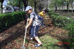 | 1.前日、城西公園の桜並木をきれいに清掃し、大量の落ち葉をゲットした。 |