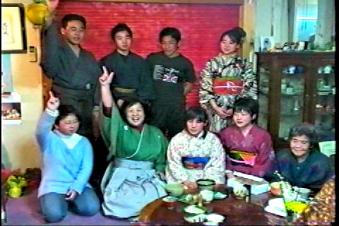着物を着せてもらって、おひな様のように上本先生と並んだ塾長。