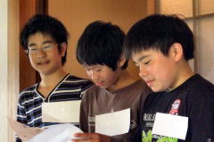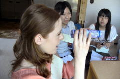 自己紹介やRuthさんに見せたい物などを、生徒たち自身が用意して、話題を考えた。自分の思いを伝えるために辞書を引いたり、発音の練習をしたり、訪問の準備そのものが、たいへんよい勉強になった。